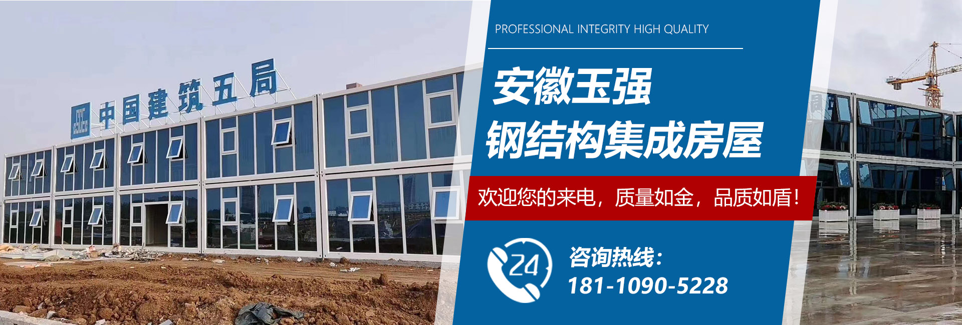 關(guān)于我們安徽玉強(qiáng)鋼結(jié)構(gòu)集成房屋有限公司是一家集研發(fā)、設(shè)計(jì)、生產(chǎn)、銷售服務(wù)于一體的活動房與集裝箱制造企業(yè),公司隊(duì)伍具有多年鋼結(jié)構(gòu)制作及產(chǎn)品檢測經(jīng)驗(yàn),嚴(yán)格按照鋼結(jié)構(gòu)標(biāo)準(zhǔn)要求制作、檢測。致力于提供研、產(chǎn)、銷、于一體,有著多年積累的先進(jìn)生產(chǎn)技術(shù)和豐富工作經(jīng)驗(yàn),采用精良的工藝技術(shù),生產(chǎn)美觀大方的定型產(chǎn)品,長期以來,受廣大用戶的信賴和支持。歡迎您的來電咨詢。